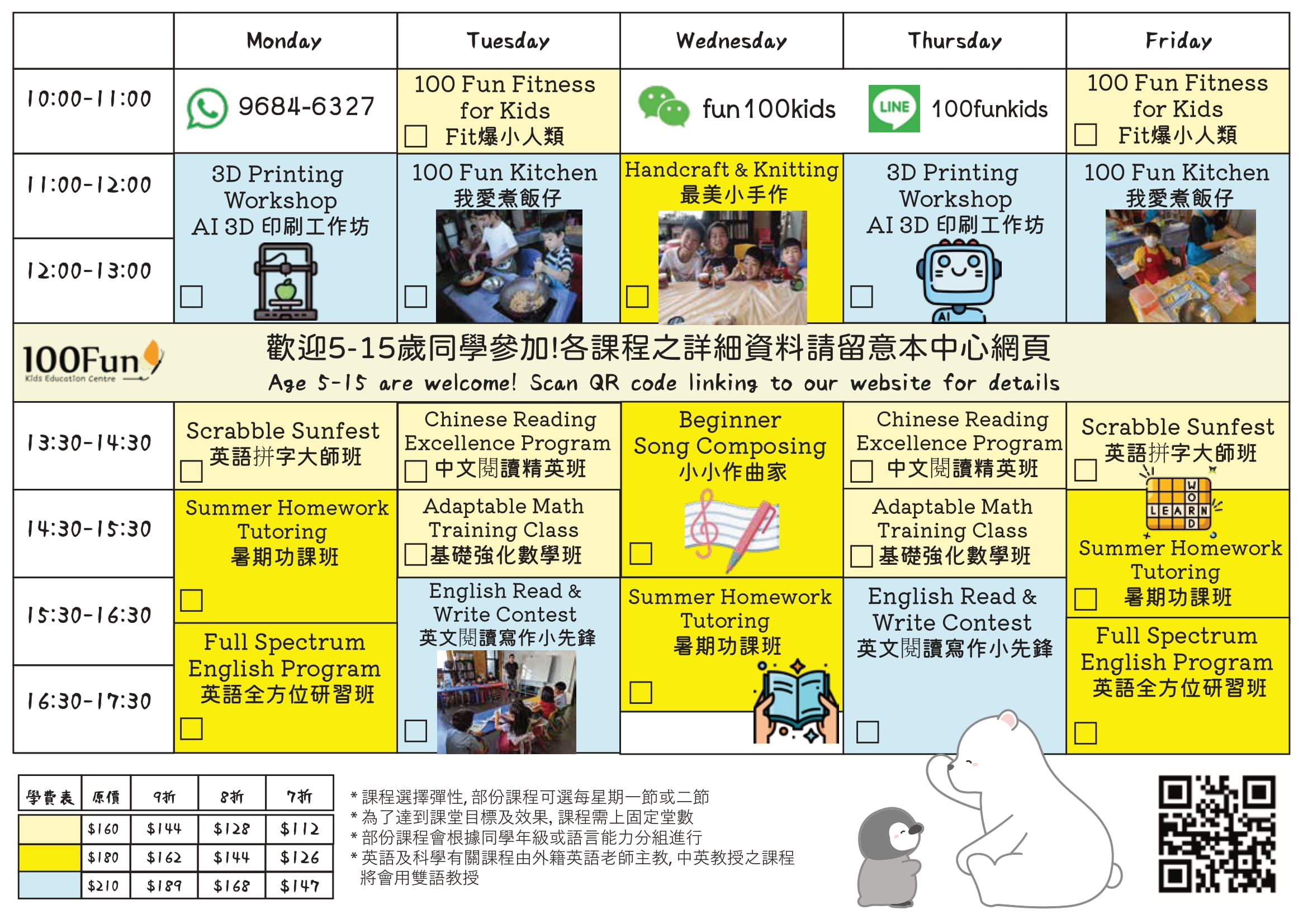 - 部份課程會根據同學年級或語言能力分組進行